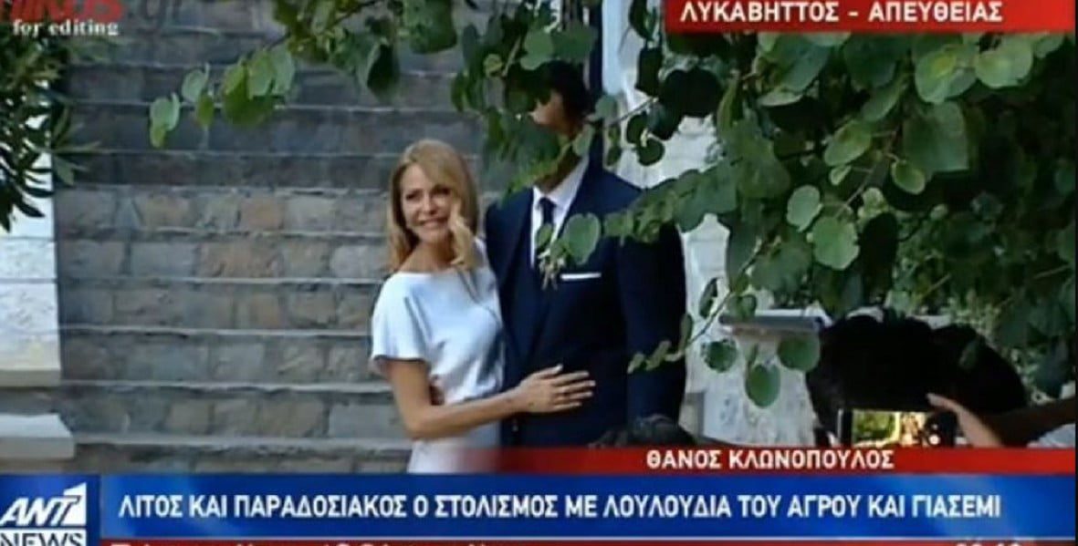 Ο γαμπρός και υποψήφιος βουλευτής της ΝΔ πήγε στην εκκλησία συνοδευόμενος από τους κουμπάρους του ενώ τη νύφη συνόδευσαν ο γιος της Μάξιμος, ένα βιολί κι ένα λαούτο που έπαιζαν ορχηστρικό κομμάτι από την ταινία «Τζένη –Τζένη».