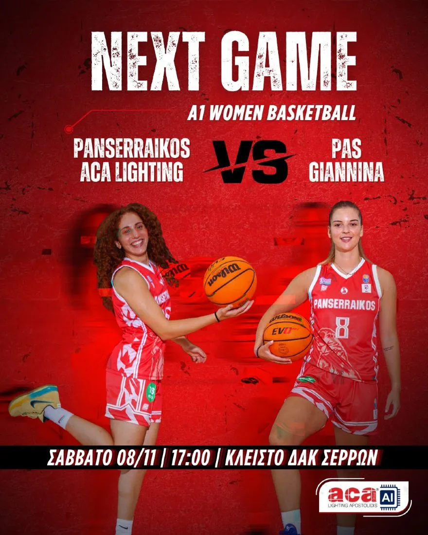Η γυναικεία ομάδα μπάσκετ του Πανσερραϊκού υποδέχεται τον ΠΑΣ ΓΙΑΝΝΙΝΑ το Σάββατο 8 Νοεμβρίου , στις 17:00, στο ΚΛΕΙΣΤΟ ΓΥΜΝΑΣΤΗΡΙΟ ΣΕΡΡΩΝ ΤΣΙΝΤΣΑΡΗΣ ΙΩΑΝΝΗΣ, στο πλαίσιο της 6ης αγωνιστικής του πρωταθλήματος Α1 Γυναικών.