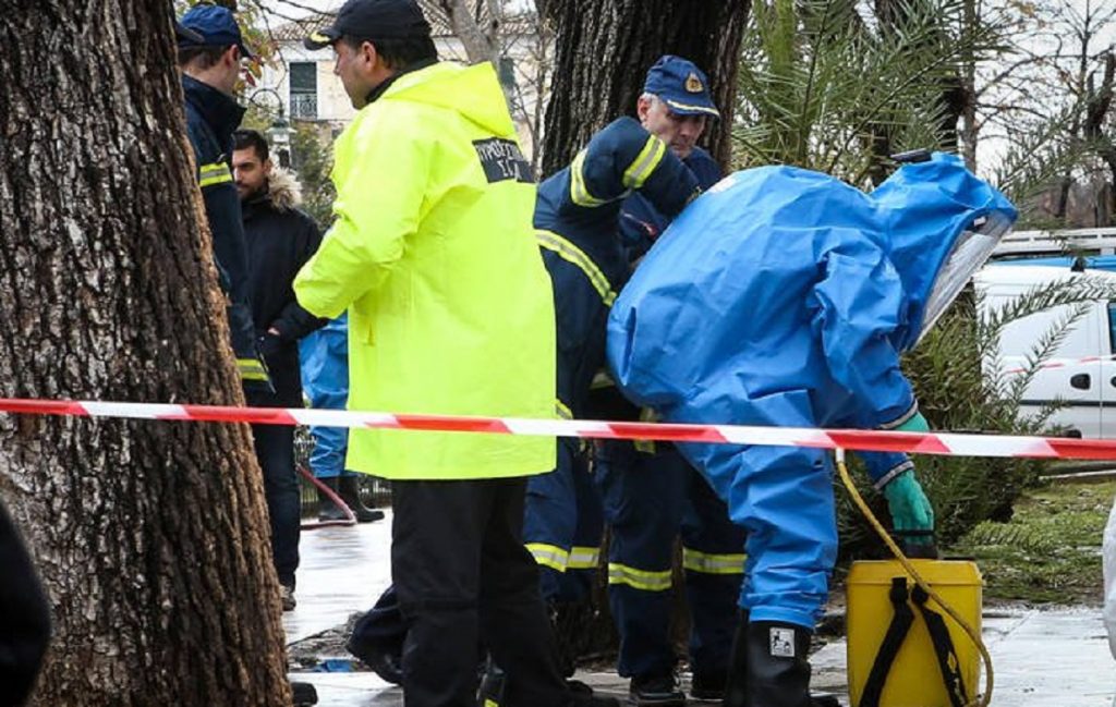 Αξιωματικός της Πυροσβεστικής Υπηρεσίας Κέρκυρας, φορώντας την κατάλληλη ειδική στολή, τηρώντας τα απαιτούμενα πρωτόκολλα της επιχείρησης, απομάκρυνε τον ύποπτο φάκελο από το ταχυδρομείο, που απεστάλη από την Ινδία, με παραλήπτη το Ιόνιο Πανεπιστήμιο.