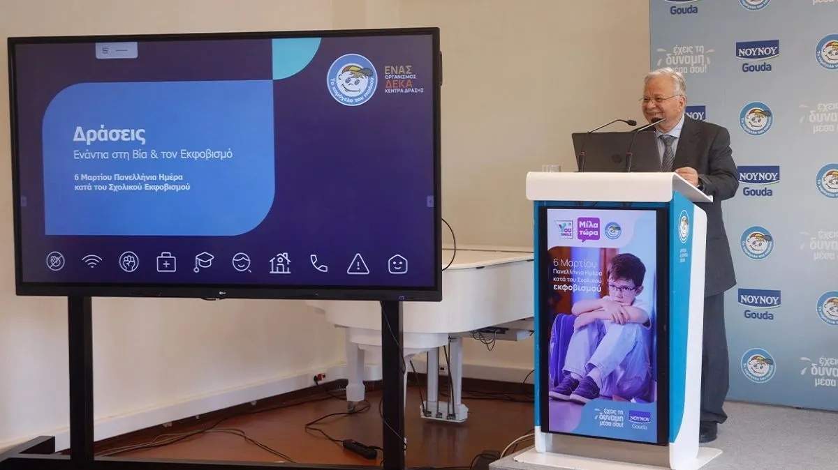 Ιδιαίτερη αναφορά έγινε και στη διετή συνεργασία του Οργανισμού με το ΝΟΥΝΟΥ Gouda, χάρη στην οποία τα έτη 2024 και 2025 ομάδα εξειδικευμένων ψυχολόγων πραγματοποίησε παρεμβάσεις πρόληψης και ευαισθητοποίησης για το bullying σε 67.500 μαθητές και μαθήτριες από 900 σχολεία πανελλαδικά.