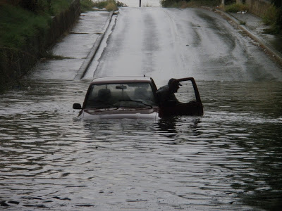 Παρά τις συστάσεις της τροχαίας να μην επιτραπεί η διέλευση των οχημάτων κάτω από τη γέφυρα, οδηγός ΙΧ οχήματος παραβίασε τις απαγορευτικές κορδέλες επισήμανσης που στήθηκαν, με αποτέλεσμα να εγκλωβιστεί κάτω από τη γέφυρα, καθώς το νερό ξεπέρασε το ένα μέτρο.