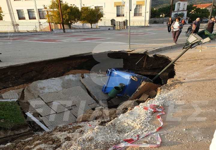 Όλα σύμφωνα με μαρτυρίες ξεκίνησαν από μια ρωγμή που σημειώθηκε στον δρόμο και μέχρι να αντιληφθούν περί τίνος πρόκειται άρχισε να υποχωρεί σταδιακά το οδόστρωμα με αποτέλεσμα ο δρόμος να υποστεί καθίζηση και να εμφανιστεί μια τρύπα βάθους πάνω από 3 μέτρα