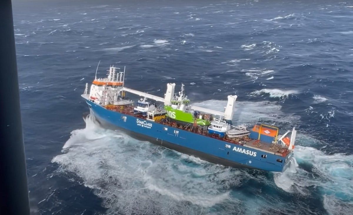 Το Eemslift Hendrika, το οποίο μεταφέρει μικρά σκάφη από το Μπρέμερχάβεν της Ολλανδίας στο Κόλβερέιντ της Νορβηγίας, εξέπεμψε χθες σήμα κινδύνου χθες κάνοντας λόγο για σημαντική κλίση κατόπιν μετατόπισης φορτίου.