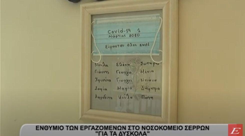 Εργαζόμενοι του Γενικού Νοσοκομείου Σερρών, νοσηλευτές που έδωσαν και την ψυχή τους έφτιαξαν ένα ενθύμιο, που δείχνει ότι πέρασαν πραγματικά δύσκολα.