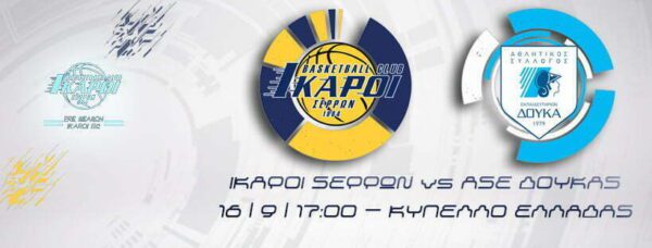 Ο Αθλητικός όμιλος καλαθοσφαίρισης (Α.Ο.Κ) Ίκαροι Σερρών, προσκαλεί όλους τους φίλους της ομάδας μας και όλους τους φίλους του μπάσκετ, στο κλειστό γυμναστήριο της Κοιλάδας για τον αγώνα που δίνει το Σάββατο 16/09/2017 στις 17:00, με αντίπαλο τον ΑΣΕ Δούκα, στο πλαίσιο της Α΄ φάσης για την 2η αγωνιστική ημέρα, του κυπέλλου Ελλάδας.