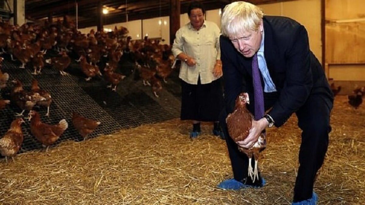 Ο Μπόρις Τζόνσον φωτογραφήθηκε με πουλερικά και έκανε επιθεώρηση σε κότες σε μια φάρμα της Ουαλίας.