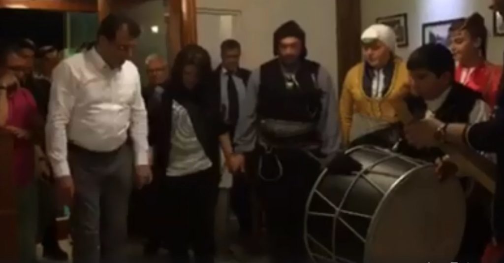 Οι χορευτικές του ικανότητες φαίνονται στο βίντεο που ακολουθεί το οποίο τραβήχτηκε το 2016 σε ένα γλέντι στα Γιαννιτσά. Όπως φαίνεται και στο βίντεο το οποίο και πόσταρε στο προσωπικό του λογαριασμό στο facebook, ο νέος δήμαρχος της Κωνσταντινούπολης χορεύει με την ψυχή του και σχολιάζει: «χορός με Έλληνες φίλους στα Γιαννιτσά».