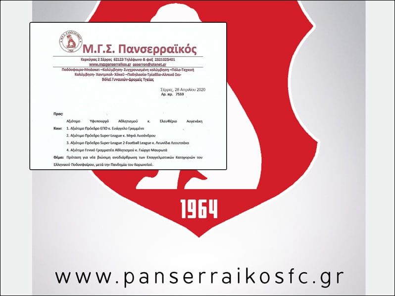 Τα μέλη της Διοίκησης του ποδοσφαιρικού τμήματος ΜΓΣ Πανσερραϊκός με την σύμφωνη γνώμη του προεδρείου του ερασιτέχνη, προχώρησαν σε επιστολή-πρόταση, προς τους αρμόδιους φορείς, που διοικούν τον Ελληνικό αθλητισμό και το ποδόσφαιρο.