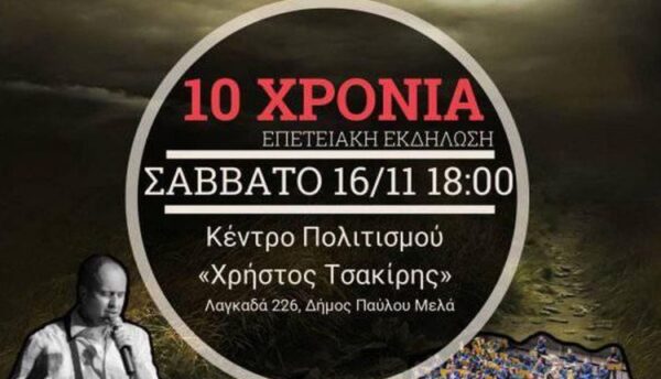 Η εκδήλωση θα πραγματοποιηθεί το Σάββατο 16 Νοεμβρίου 2019 και ώρα 18:00, στο Θέατρο του Κέντρου Πολιτισμού «Χρήστος Τσακίρης» (οδός Λαγκαδά 221) του Δήμου Παύλου Μελά στη Θεσσαλονίκη.