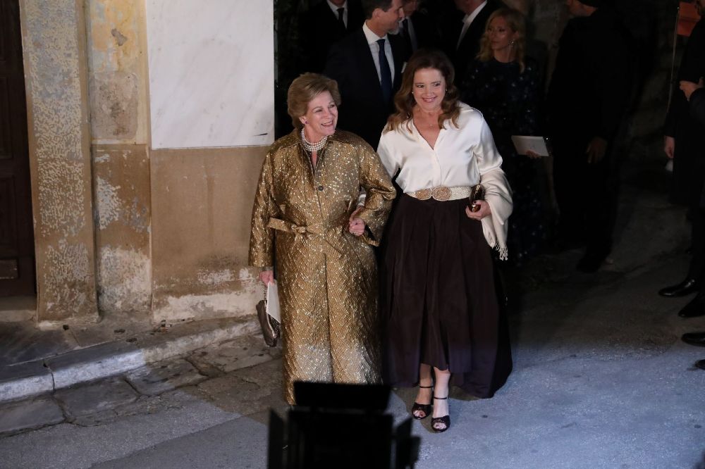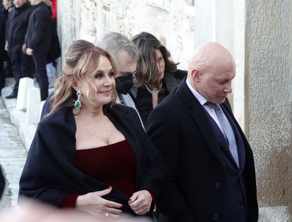 Με μια μικρή καθυστέρηση πέντε λεπτών η Χρυσή Βαρδινογιάννη έχοντας στο πλευρό της τον πατέρα της Γιώργο Βαρδινογιάννη και τον γιο της, έφτασε με την σειρά της στην εκκλησία.