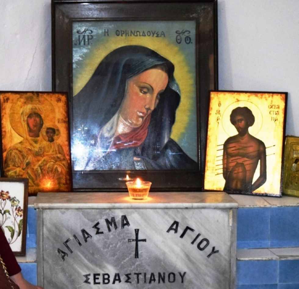 Εκπληρώνοντας και το τάμα μας, το άγιασμα πλέον κοσμούν τα εικονίσματα της Παναγίας της Βουλκανιώτισσας από το Όρος Ιθώμη της Μεσσηνίας, που προσφέραμε για ανάπαυση της ψυχής του πατέρα μας Δημητρίου Γεωργιόπουλου του Βασιλείου από το Πλατύ Καλαμάτας Μεσσηνίας και του Αγίου Σεβαστιανού, αντίγραφο της ιεράς εικόνας, που βρίσκεται στην μοναδική ομώνυμη ορθόδοξη εκκλησία στην Κω και είναι δέηση από εμένα και την σύζυγό μου την Μαριάννα μου.