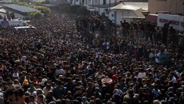 Χιλιάδες άνθρωποι συγκεντρώθηκαν μέσα και γύρω από το Νοσοκομείο Νάσερ στο Χαν Γιούνις, στη νότια Λωρίδα της Γάζας, περιμένοντας την άφιξη των απελευθερωθέντων κρατουμένων, ορισμένοι ανεμίζοντας παλαιστινιακές σημαίες και άλλοι κρατώντας φωτογραφίες των συγγενών τους.
