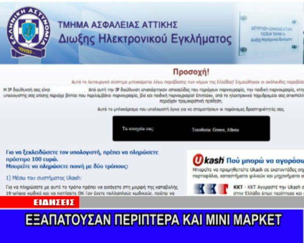 ΔΙΩΞΗ ΕΓΚΛΗΜΑΤΟΣ ΕΞΑΠΑΤΟΥΣΑΝ ΠΕΡΙΠΤΕΡΑ ΚΑΙ ΜΙΝΙ ΜΑΡΚΕΤ