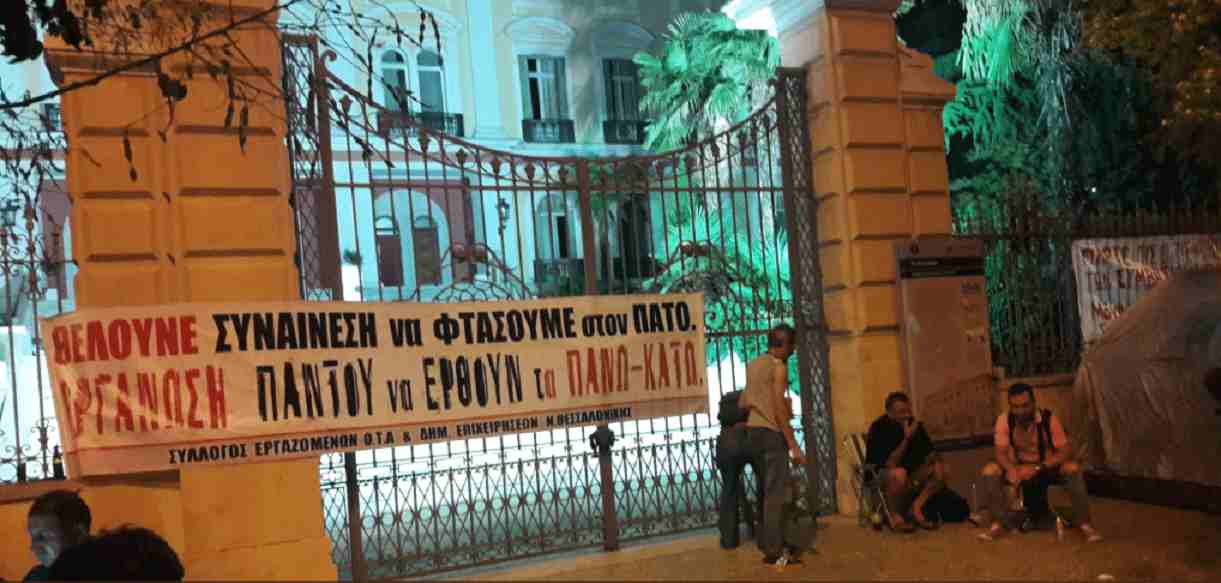 “Μέσα από μια μαζικοτατη συνέλευση οι συμβασιούχοι συνάδελφοι του Ν ΘΕΣΣΑΛΟΝΙΚΗΣ αποφάσισαν σήμερα να ” κατασκηνώσουν” έξω από το ΥΜΑΘ, συνεχίζοντας και κλιμακώνοντας τον αγώνα τους για μόνιμη και σταθερή δουλειά.
