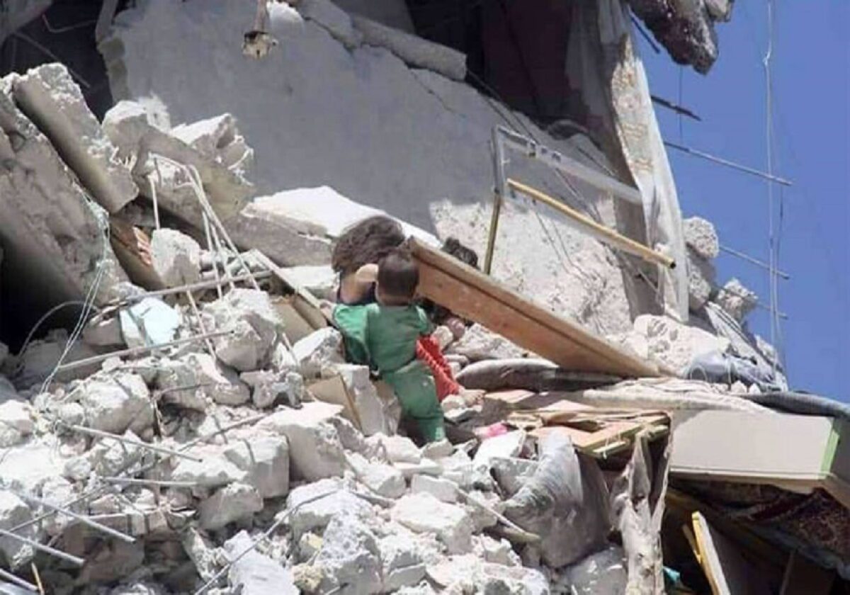 Συγκλονίζει όλο τον κόσμο το βίντεο που δημοσίευσε το SY24, δείχνει την πεντάχρονη Riham al-Abdullah να προσπαθεί να κρατήσει την επτά μηνών αδερφή της Tuqa για να μην πέσει από το βομβαρδισμένο τους σπίτι στο Ιντλίμπ της Συρίας ενώ ο πατέρας τους παρακολουθεί ουρλιάζοντας και ανήμπορος να τις βοηθήσει.