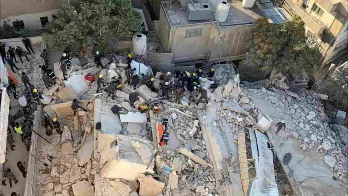 Η κατάρρευση του διώροφου κτιρίου αποδίδεται σε υποχώρηση του εδάφους λόγω των βροχοπτώσεων που έπληξαν την περιοχή.