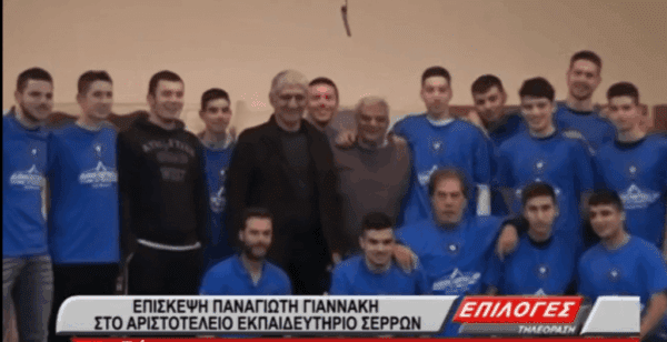 Την αποθέωση από μικρούς και μεγάλους γνώρισε ο θρύλος του Ελληνικού μπάσκετ Παναγιώτης Γιαννάκης, ο οποίος το πρωί της Πέμπτης 21 Δεκεμβρίου 2017, βρέθηκε στο Αριστοτέλειο Εκπαιδευτήριο Σερρών. Η διοίκηση και οι καθηγητές της σχολικής μονάδας προσκάλεσαν