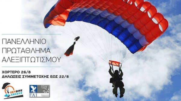 Η Ελληνική Αεραθλητική Ομοσπονδία διοργανώνει το Πανελλήνιο Πρωτάθλημα Αλεξιπτωτισμού στις 26 Αυγούστου στο Αεροδρόμιο Χορτερού.