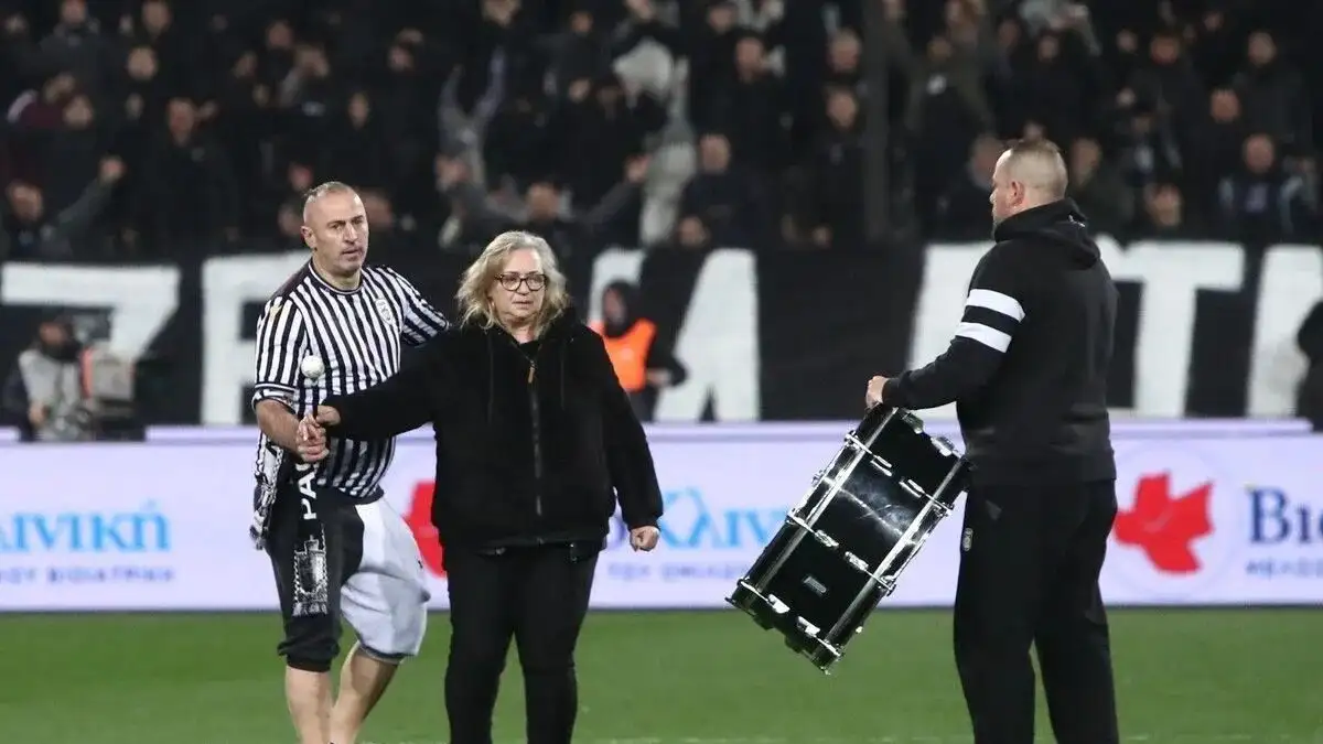 Η συγκεκριμένη γυναίκα βρέθηκε στον αγωνιστικό χώρο της Τούμπας και μέσα σε έντονα φορτισμένο κλίμα, χτύπησε το τύμπανο των οργανωμένων οπαδών του ΠΑΟΚ.