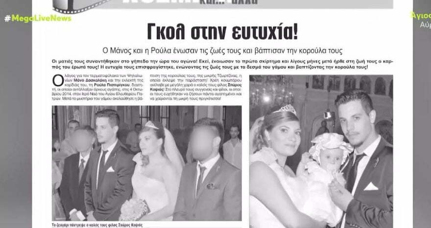 «Οι ματιές τους συναντήθηκαν στο γήπεδο την ώρα του αγώνα. Εκεί ένιωσαν το πρώτο τους σκίρτημα και λίγους μήνες μετά ήρθε στη ζωή τους ο καρπός του έρωτά τους».