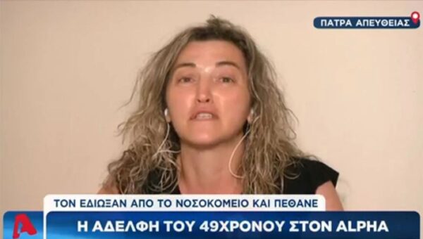 Ξέσπασε αδερφή του 49χρονου που πέθανε στην Πάτρα μετά από επίσκεψη στο νοσοκομείο «Άγιος Ανδρέας», όταν το νοσηλευτικό προσωπικό φέρεται να μην ακολούθησε το πρωτόκολλο και άφησαν τον άνδρα να φύγει ενώ είχε συμπτώματα εμφράγματος.