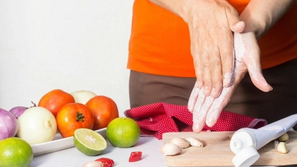 Απλώστε λίγη στα χέρια σας για να διώξετε τις μυρωδιές ψαριών, κρεμμυδιού και σκόρδου Αν έχετε μαγειρέψει ποτέ με κάτι από τα παραπάνω θα γνωρίζετε πως τα χέρια μυρίζουν για το υπόλοιπο της ημέρας όσες φορές κι αν τα πλύνετε. Βάλτε λίγη οδοντόκρεμα στα χέρια σας, τρίψτε τα μεταξύ τους και θα διαπιστώσετε πως η μυρωδιά έχει εξαφανιστεί.