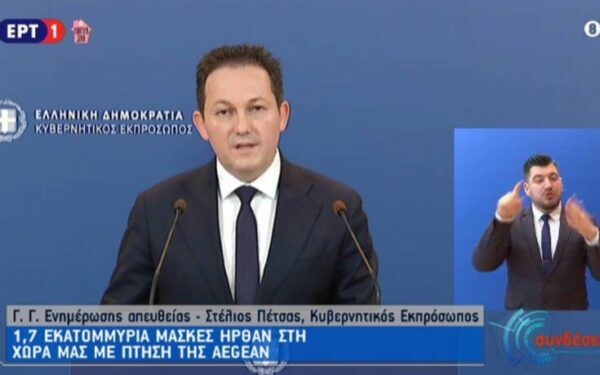 Στην προμήθεια 1,7 εκατομμυρίων μασκών προχώρησε η Ελλάδα, παρά το γεγονός ότι αυτήν τη στιγμή γίνεται ένας «παγκόσμιος πόλεμος» για την αγορά υγειονομικού υλικού, σύμφωνα με την ενημέρωση του κυβερνητικού εκπροσώπου, Στέλιου Πέτσα.