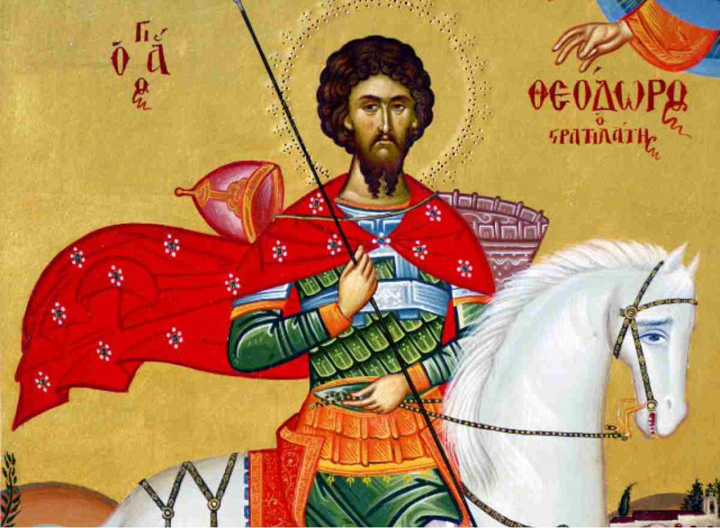 O Άγιος Θεόδωρος ο Στρατηλάτης καταγόταν από τα Ευχάϊτα της Γαλατίας και κατοικούσε στην Ηράκλεια του Εύξεινου Πόντου. Στρατιωτικός στο επάγγελμα, διακρίθηκε για την γενναιότητά του