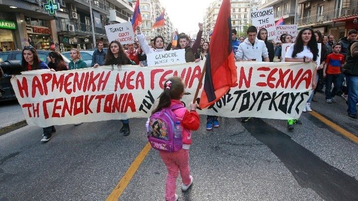 Συγκέντρωση και πορεία πραγματοποίησαν μέλη της Αρμενικής Κοινότητας Θεσσαλονίκης για την 104η επέτειο της Γενοκτονίας των Αρμενίων.