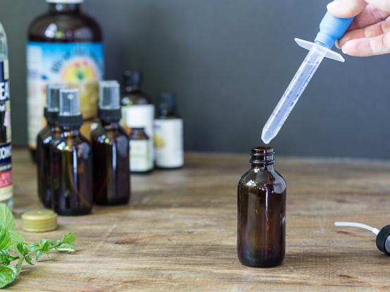 Σε ένα μικρό μπολ, ανακατέψτε όλα τα υλικά, μέχρι να αναμειχθούν καλά. Τοποθετήστε το μείγμα σε ένα μικρό μπουκαλάκι ψεκασμού, με τη βοήθεια ενός χωνιού. Πριν από κάθε χρήση, να θυμάστε να ανακινείτε το μπουκαλάκι για να υπάρχει ομοιόμορφη κατανομή των αιθέριων ελαίων.