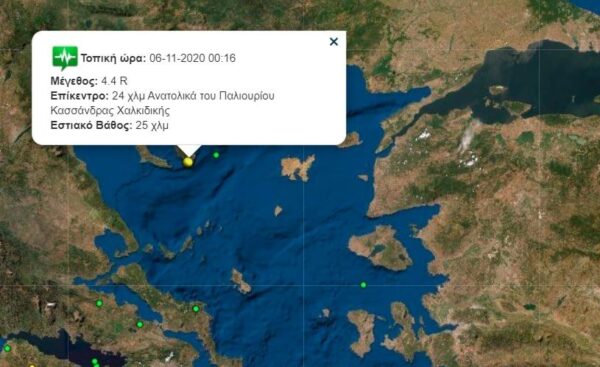 Σεισμική δόνηση σημειώθηκε στις 00:16 σε θαλάσσια περιοχή ανοιχτά της Χαλκιδικής.