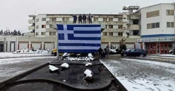 Το Μποδοσάκειο Νοσοκομείο της Πτολεμαΐδας, τίμησε την επέτειο της ανεξαρτησίας της Ελλάδας και ύψωσε μια τεράστια ελληνική σημαία στην είσοδό του.