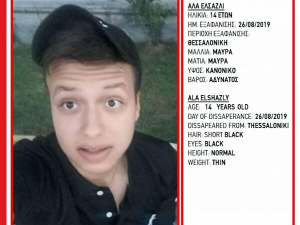 Πρόκειται για τον Αλά Ελσαζλί, για την εξαφάνιση του οποίου έχει εκδοθεί Missing Alert από το “Χαμόγελο του Παιδιού”.