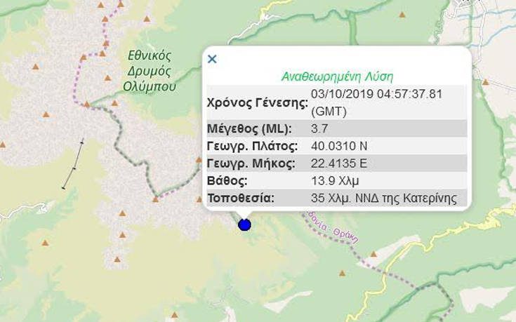 Σεισμός μεγέθους 3,7 Ρίχτερ σημειώθηκε στην Κατερίνη στις 7:57 σήμερα το πρωί.