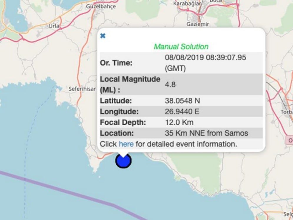 Όπως τόνισε ο κ. Λέκκας, η σεισμική δόνηση ήταν αισθητή σε Σάμο, σε Χίο, ακόμη και στην Άνδρο.