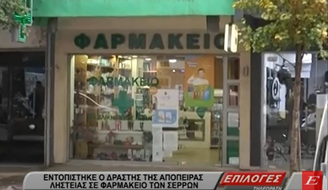 Ένας 39χρονος Σερραίος είναι ο δράστης της απόπειρας διάρρηξης σε φαρμακείο των Σερρών,νωρίς το απόγευμα της 25ης Νοεμβρίου.  Μετά από συντονισμένη έρευνα, άντρες της υποδιεύθυνσης ασφάλειας Σερρών κατάφεραν να εντοπίσουν το νεαρό σε βάρος του οποίου σχηματίστηκε δικογραφία.