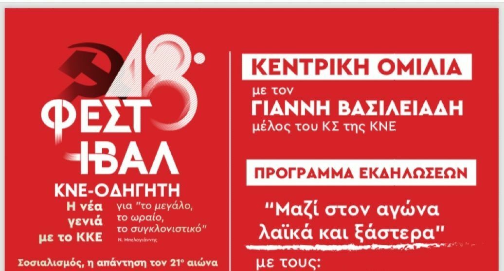 Την Παρασκευή 2 Σεπτέμβρη στο πάρκο Δορυλαίου (περιοχή «θεατράκι», πίσω από το γήπεδο του Πανσερραϊκού) θα πραγματοποιηθεί φέτος το 48ο Φεστιβάλ ΚΝΕ – ΟΔΗΓΗΤΗ στις Σέρρες.
