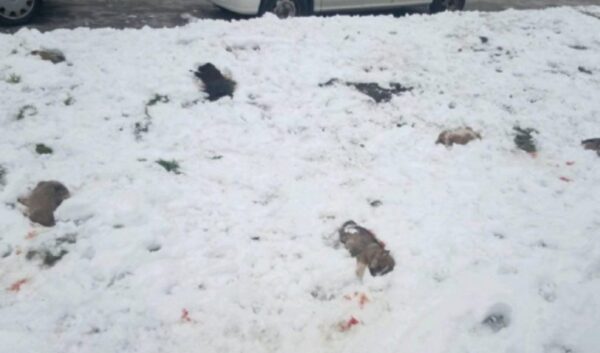 Πεταμένα μέσα στο χιόνι στην οδό Κομνηνών 77 έξι κουταβάκια κατακρεουργημένα βρέθηκαν το πρωί .Οι εικόνες μιλούν από μόνες τους και είναι σκληρές .