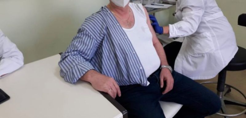Ο κος Απόστολος Βαγενάς εμβολιάστηκε σήμερα στο Κέντρο Υγείας Νέας Ζίχνης φορώντας φανελάκι με λεκέ, για να τιμήσει όπως λέει τον καθηγητή Σωτήρη Τσιόδρα “για ό,τι έκανε για μας!!!”