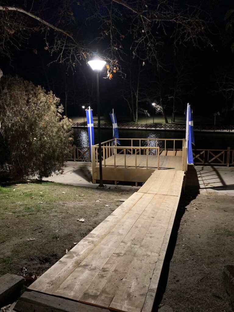“Μια ημέρα μετά την εορτή των Θεοφανίων η εξέδρα παραμένει δίπλα στη λίμνη κάτι που αποτελεί σοβαρό κίνδυνο μιας και καθημερινά παίζουν δεκάδες παιδιά εκεί. Δεν είναι δύσκολο κάποιο από αυτά να βρεθεί στα παγωμένα νερά. Λογικά θα παραμείνει και αύριο Κυριακή μιας και τα συνεργεία του Δήμου δεν εργάζονται Κυριακή”