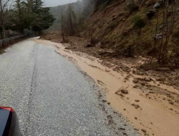 Κατολίσθηση από την έντονη βροχόπτωση έγινε στον δρόμο που οδηγεί στην Ιερά Μονή Αναλήψεως στην Πρώτη με αποτέλεσμα αυτός να κλείσει