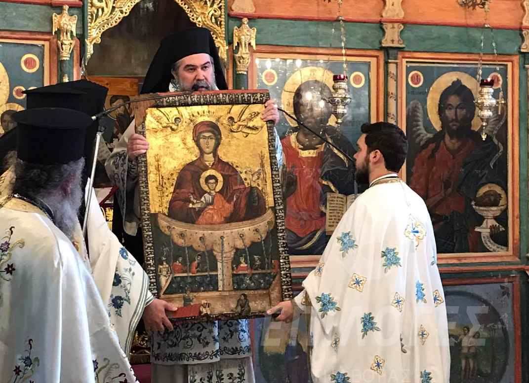 Έπειτα ακολούθησε η ενθρόνιση της ιερά εικόνα της Παναγίας η οποία βρέθηκε στον ιερό ναό και έχει δύο όψεις, η Παναγία η Γλυκοφιλούσα από την μια πλευρά του 16ου αιώνα και η Ζωοδόχος Πηγή από την άλλη