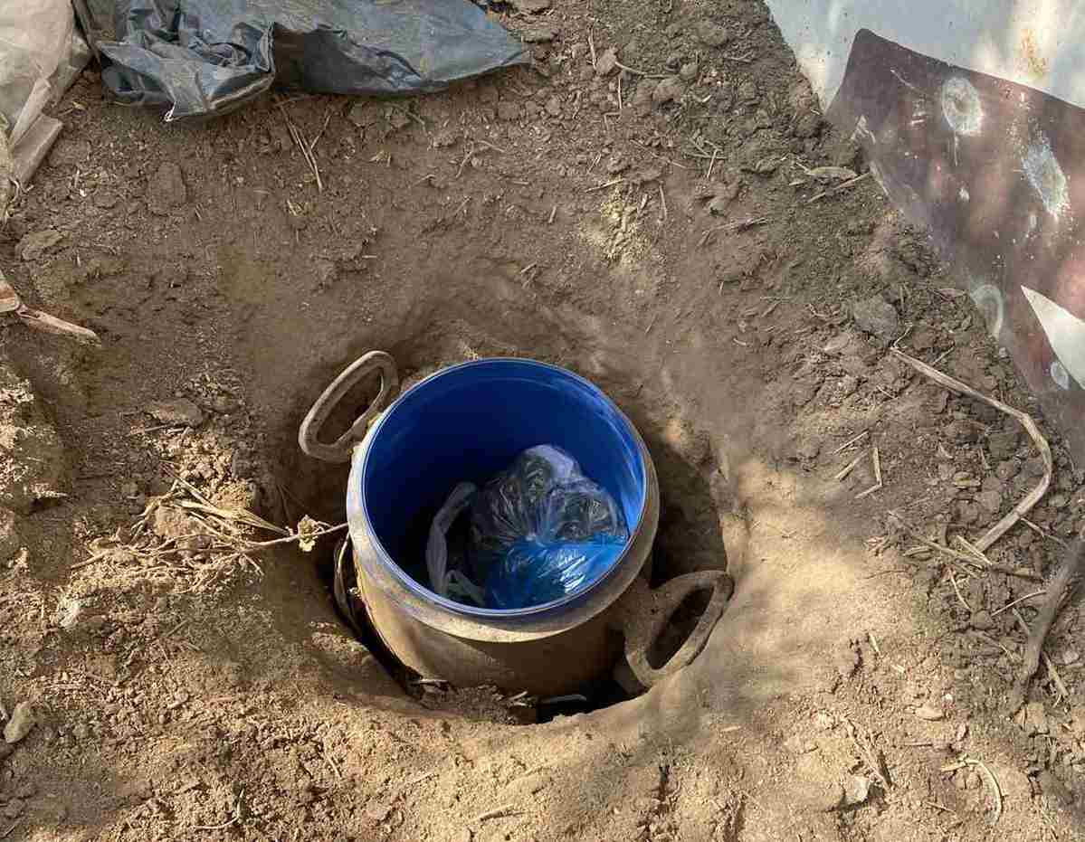 - 3 κιλά και 657 γραμμάρια κάνναβης, μέρος των οποίων ήταν κρυμμένο μέσα σε βαρέλι που ήταν τοποθετημένο μέσα στο έδαφος,