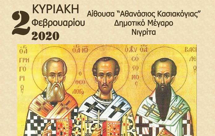 που θα πραγματοποιηθεί υπό την αιγίδα της Ιεράς Μητροπόλεως Σερρών και Νιγρίτης, την Κυριακή 3 Φεβρουαρίου 2020, στις 19:00 στην αίθουσα «Αθανάσιος Κασιακόγιας» του Δημοτικού Μεγάρου στην Νιγρίτα.