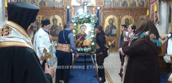 Ακολούθησε λιτανεία της Ιεράς Εικόνος και Αρτοκλασία και τέλος στον αύλειο χώρο του Ναού πραγματοποιήθηκε εκδήλωση με θέμα “ο Ποντιακός κρυπτοχριστιανισμός” από τον Πολιτιστικό Σύλλογο.