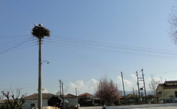 Μπαίνω στο χωριό και βλέπω τους πρώτους-πρώτους πελαργούς που ήρθαν και έχουν πιάσει τις φωλιές, συνήθως τις περσινές δικές τους, που απ’ ότι φαίνεται τους βολεύει να τις φτιάχνουν πάνω στους στύλους της ΔΕΗ.