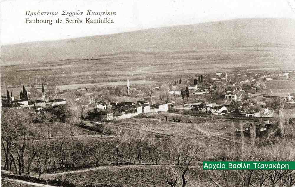 “Σπάνια κάρτα του συνοικισμού της Καμενίκιας στα τέλη του 19ου αιώνα (1898;). Το τότε αναφερόμενο ως προάστειο έφερε την ονομασία Καμενίτσα ή Καμινίκια ή Καμενίκη, (τουρκιστί Κριστιάν Καμενίτσα λόγω των πλήθους των χριστιανών που κατοικούσαν εκεί), σε αντιδιαστολή με το προάστειο της Άνω Καμενίκιας που επί τουρκοκρατίας ονομαζόταν Ντιουλγκιέρ μαχαλεσί, δηλαδή μαχαλάς των ξυλουργών. Και στη μεν Άνω Καμενίκια δέσποζε ο ναός του Ιωάννου του Θεολόγου, στη δε Κριστιάν Καμενίκια ο ναός της Μαρίας της Ευαγγελίστριας, όπως την αναφέρει ο Παπαγεωργίου. Τέλος θα πρέπει να αναφέρουμε πως ανάμεσα στα δύο αυτά… προάστεια υπήρχε τουρκικό τζαμί και νεκροταφείο.”