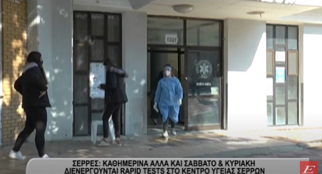 Καθημερινά από τις 8.30 το πρωί εως τις 7.30 το βράδυ αλλά και Σάββατο και Κυριακή από τις 8.30 το πρωι εως τις 15.30 το μεσημέρι διενεργούνται Rapid Tests στο Κέντρο Υγείας Σερρών από τις κινητές ομάδες Υγείας (ΚΟΜΥ) του Εθνικού Οργανισμού Δημόσιας Υγείας (ΕΟΔΥ).