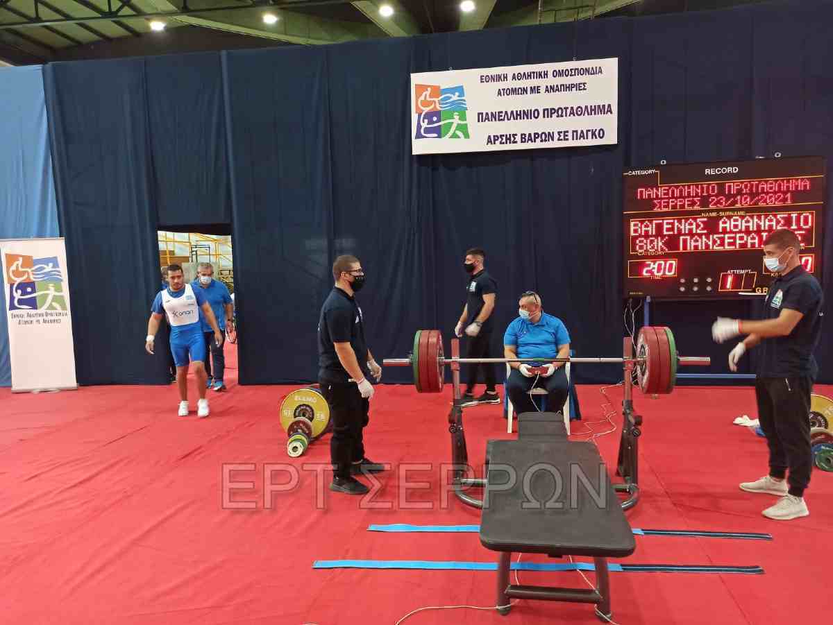 Τη δεύτερη θέση στην Ελλάδα στην κατηγορία του και το αργυρό μετάλλιο κατέκτησε ο αθλητής του Μ.Γ.Σ. Πανσερραϊκου ΑμεΑ Αθανάσιος Βαγενάς. «Ο Θανάσης έκανε ατομικό ρεκόρ κι έδειξε για ακόμη μια φορά ότι είναι το μέλλον του αθλήματος στην Ελλάδα» είπε στην ΕΡΤ Σερρών ο ομοσπονδιακός προπονητής Δημήτρης Ιωαννίδης υπογραμμίζοντας ότι ο Σερραίος πρωταθλητής έχει μετακομίσει στη Θεσσαλονίκη κι έχουν πλέον την ευκαιρία να προπονούνται μαζί για να φέρουν ακόμα περισσότερες διακρίσεις.
