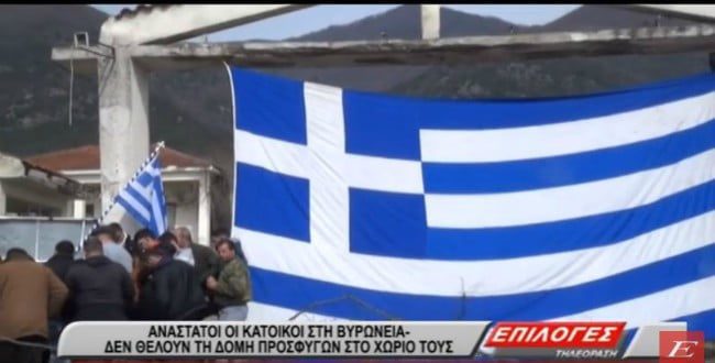Κρατώντας σημαίες στα χέρια τους από το στρατόπεδο Βασιλειάδη στη Ροδόπολη, έφτασαν στη Βυρώνεια και ζητούν να μην έρθουν οι πρόσφυγες στην περιοχή τους.